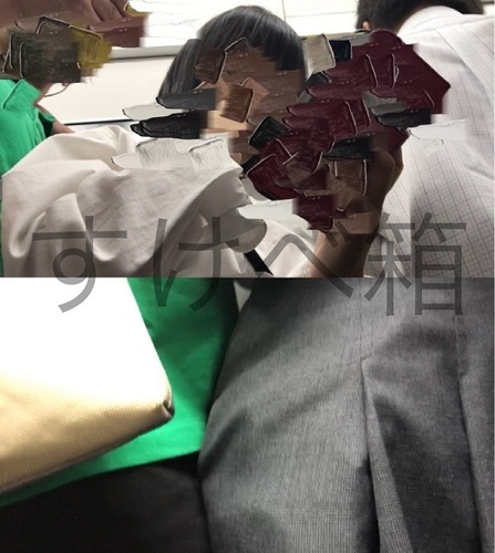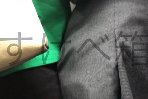 股間を押しつける男とその股間に何食わぬ顔でお尻を擦り付ける●K。