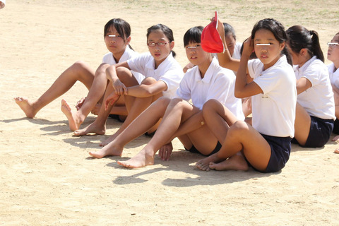 ウマの基部の娘も裸足になっていい天気なので汗で砂が短パンにこびりつきます。