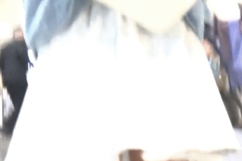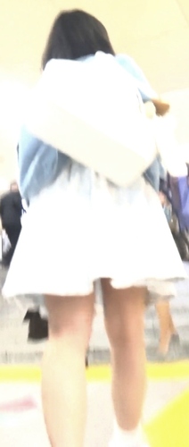 彼女は水色の花柄ミニスカートを履いていました。裾がフリフリな感じのスカートだったので簡単にめくり上がりそうに見えました。これはパンツが狙えそうです。素早くカメラを準備して撮影を開始しました。2人を後ろから追いかけつつチャンスを伺います。