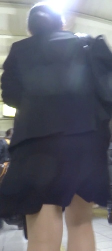 彼女は黒いミニスカートを履いていました。少し学生さん風なスカートでパンツが撮れそうな感じに見えます。そこでカメラを準備して撮影を開始しました。彼女を追いかけていきます。