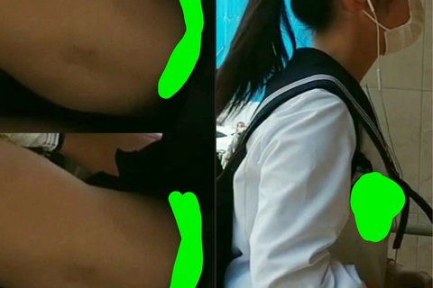 制服学生風お嬢さんのいやらしい太ももおっぱいを覗こうと毎日スマホいじり方々にはタマンネ~~作品です!!