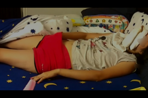 タオルの匂い嗅ぎながら物凄い勢いでオナニーしています。なんどイッても足りないらしく数え切れないほどイッてます。足ピン高速オナニーです。