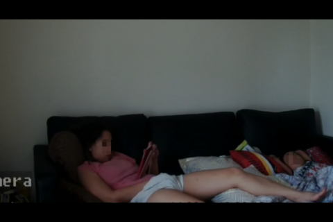 寝ている子供の横で激しく高速足ピンオナニーしています。いくときの激しさと顔がたまりません。