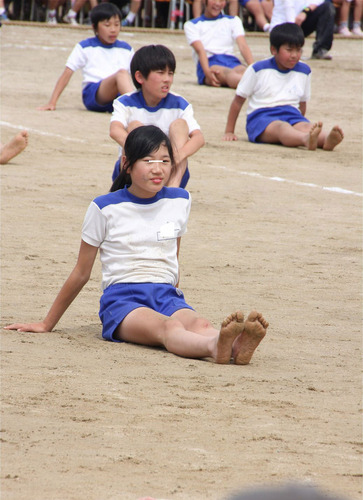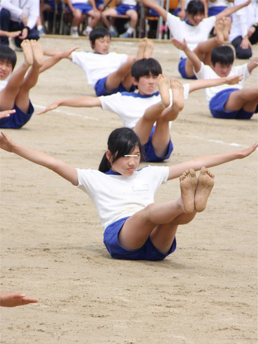 赤い髪留めが特徴の注目おねいさんがいよいよ組体操にチャレンジ。