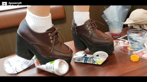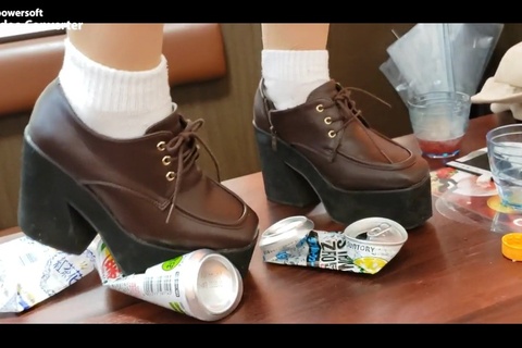 自分の靴で空き缶、ペットボトル、手アンコール