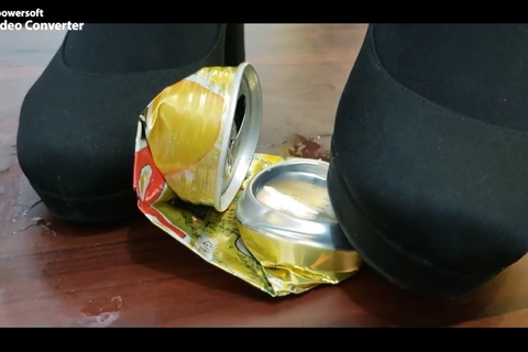 私服とパンプス(どっちも自前)で空き缶クラッシュ(唾)