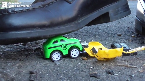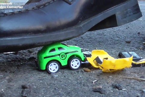 空き缶、ミニカー(2台ずつの2シーン)、バナナ、みかん、ハマグリ、蟹