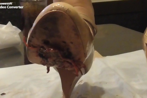 私服にメーカーは忘れたけどベージュのエナメル・ストラップ・パンプスだ