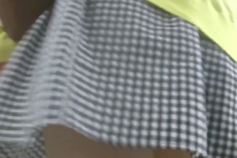 パンチラ盗撮 レース付きグレーの縞パンツを激写