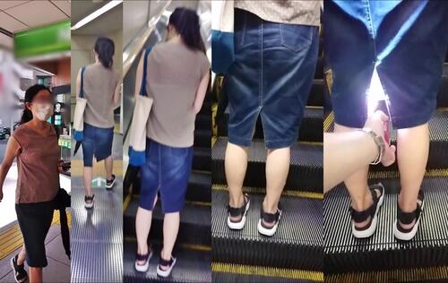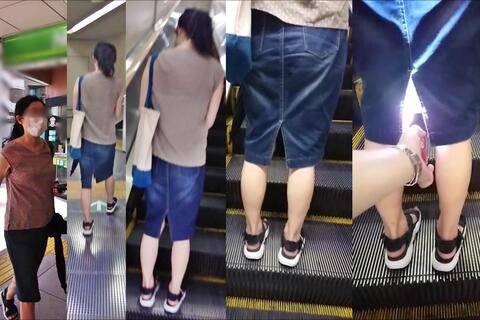 スカート内を撮影する瞬間をとらえた、決定的瞬間の映像です。