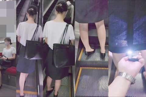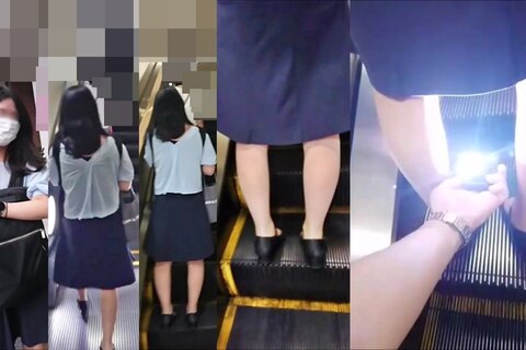 スカート内を撮影する瞬間をとらえた、決定的瞬間の映像です。