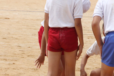 ピッタリめの短パン娘が目の前に。