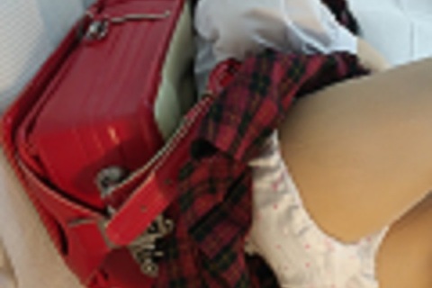 144 赤系タータンチェックの吊りスカート制服の未夢ちゃんにイタズラ(生パンツ編)