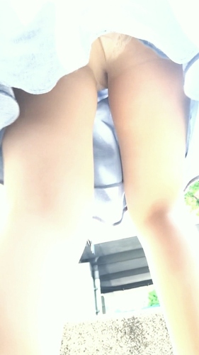 パンチラ盗撮 白パンツがベージュのパンストの中に