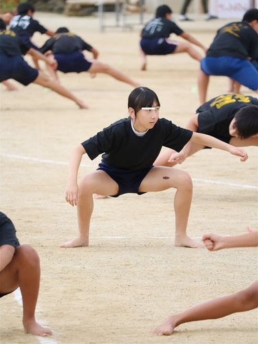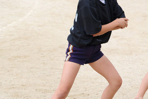 紺地ながら独自のラインが入ったオリジナル短パン。