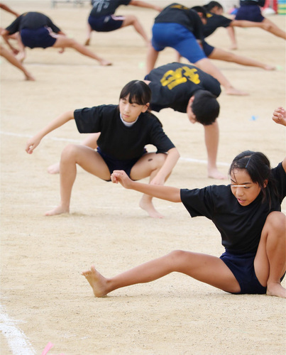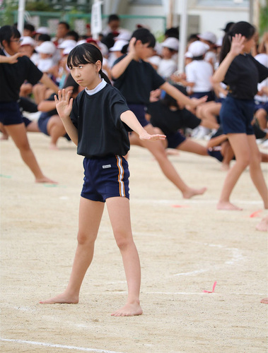 シャツは自由ながらきちっとシャツ入れの短パンと裸足姿がりりしい。