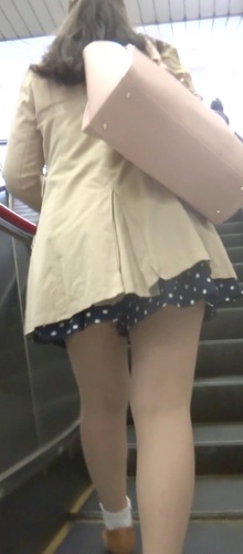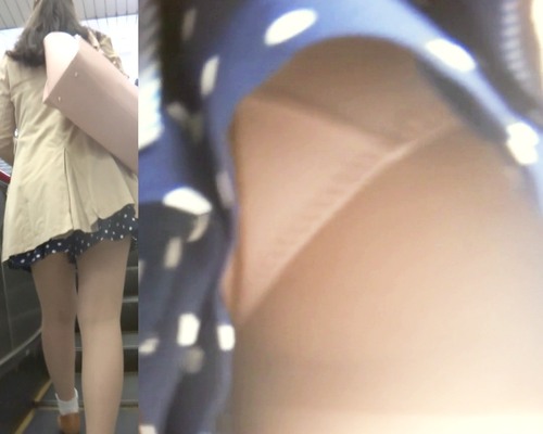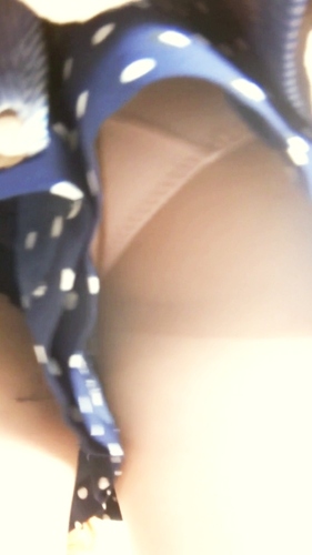 彼女は紺色に白水玉のキュロットスカートを履いていました。キュロットスカートはパンツが狙いにくそうですが、彼女のキュロットはかなり股の部分が広がっているタイプだったので、カメラを差し込む隙間がありました。これならパンツが狙えそうに見えます。そこでカメラを準備して撮影を開始しました。彼女に近づきながらチャンスを待ちます。