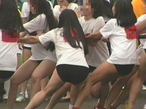 部活でしょうか?マーチング隊が登場。結構ミニスカートで良い感じです。