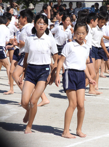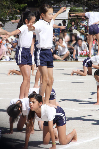 新規チームの組体操の様子を。