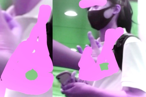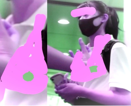 ・動画3名メイン1名(マスクお顔二人くっきり、まるでJK補講帰り、1人の声聞き取り、おっぱいくっきり、乳◯勃◯)