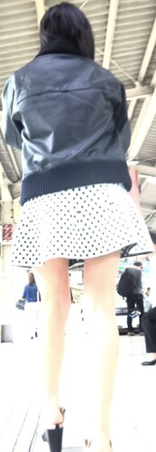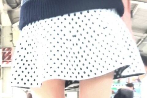 彼女は白地に黒の水玉の超ミニスカートを履いていました。それもものすごいミニスカすぎてパンツが見えそうな感じです。これは撮らないわけにはいきません。すぐにカメラを準備して撮影を開始しました。そしてホーム上を歩く彼女に後方からバレないように接近してカメラを差し込みました。
