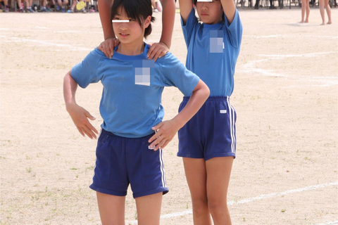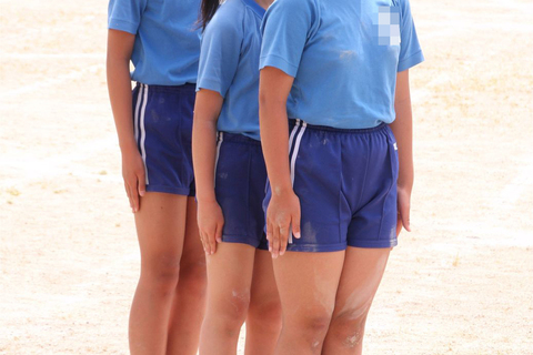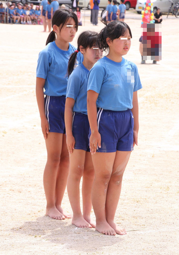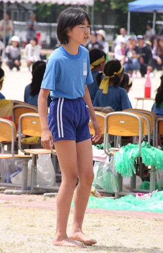 そしてしっかりシャツインの紺短パンが組み合わさります。