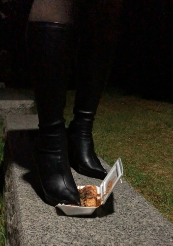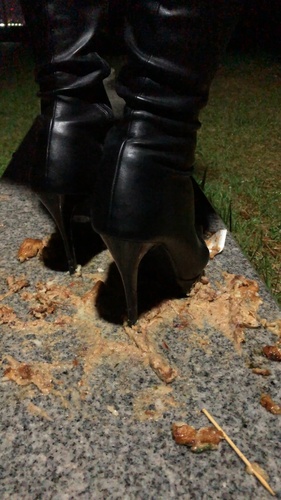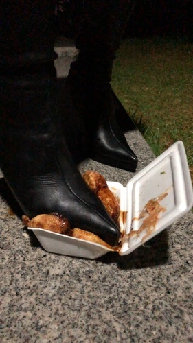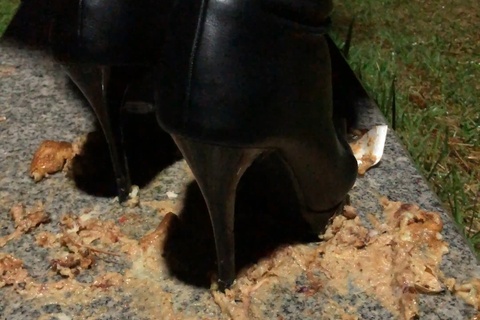ピンヒールロングブーツでたこ焼き踏み潰し(野外編) #フードクラッシュ #ロングブーツ