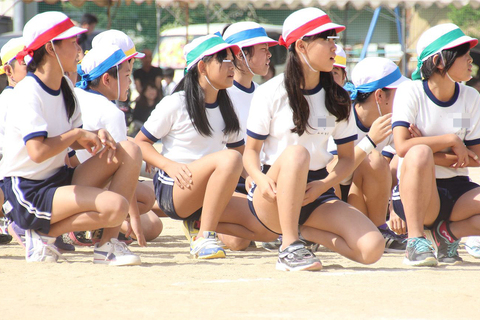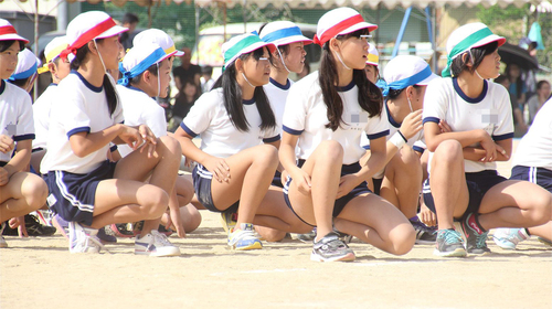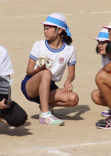 下の方が全く無防備で太もも圧縮の具合がすごいです。