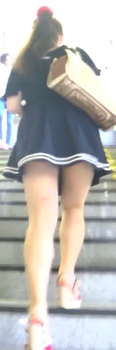 彼女は紺色の超ミニスカワンピースを着ていました。このワンピースはスカートの丈がかなり短くて、今にもパンチラしそうになっていました。これを見たらもう超コーフンでたまりません。絶対にパンツを仕留めてやろうと、すぐにカメラを準備して撮影を開始しました。彼女の背後から接近しつつチャンスを待ちます。