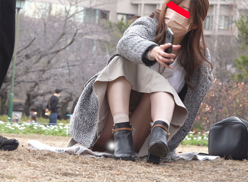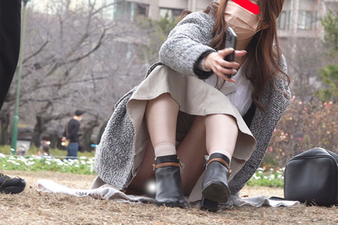 ひざ丈くらいのスカートだけど、座ったら見えちゃった