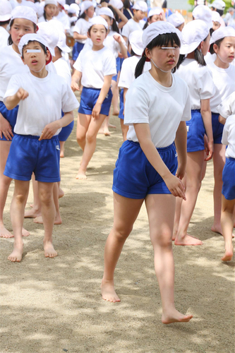 後半は組体操スタート準備。裸足になって待機~いざ本番へ。
