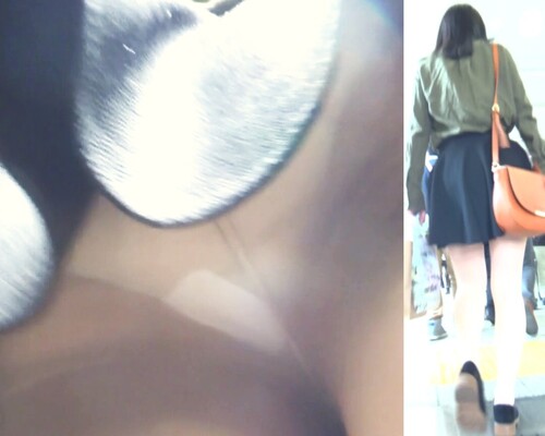 すると彼女は駅の改札へ向かう上りエスカレーターの方へ歩いて行きました。ちょうど上りエスカレーターは混雑していて行列ができており、彼女はその末尾に並びました。そこでこちらも彼女の背後にくっつきます。そして順番待ちをする彼女の背後からバレるの覚悟でスカートの中へカメラを突っ込んでしまいました。そのまま彼女がエスカレーターに乗るまでカメラを突っ込み続けます。