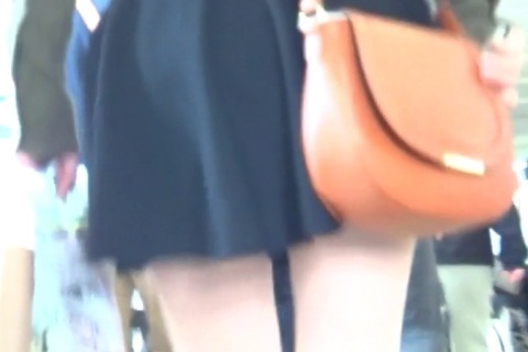 彼女は黒いミニスカートを履いていました。かなりのミニスカ丈だったのでパンツが狙えそうです。そこでカメラを準備して撮影を開始しました。彼女の背後に迫りつつチャンスを待ちます。