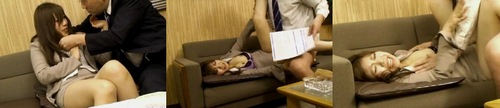 営業訪問先の会社に訪問し笑顔で愛想をふりまいて契約獲得を狙う新人生保レディー。対応する社長の男は「わたしがハンコを押せば社員の分も契約はできるよ」と気前よく話をしつつも段々と距離を詰めてきてお触りしまくり。「契約の話をしに来ただけなので」と拒否する態度をとるも男の暴走はもう止まらず、契約を脅しの材料に使われやられたい放題されてしまう新人生保レディー。