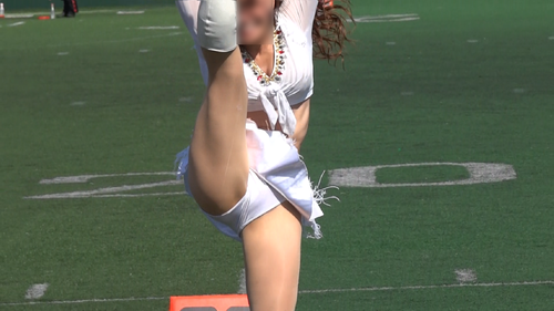 試合会場の環境からチアリーダーと同一平面からの撮影となっており、近づくこともできたので比較的迫力のある映像となっています。