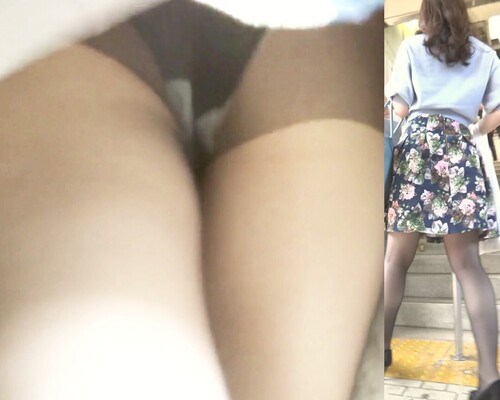 彼女は紺色の花柄ミニスカートを履いていました。プリーツがあまりかかっていないスカートだったのでカメラを中に差し込みやすそうです。さっそくカメラを準備して撮影を開始しました。彼女の近づきながらチャンスを待ちます。