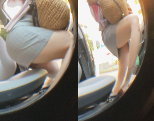 お部屋内でのパンチラは諦めましたが小型カメラを使い、案内用社用車に苦労して設置