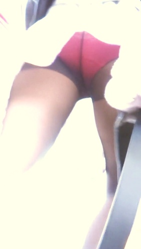 ホームに着いたところで撮影したビデオを確認です。彼女のパンツは派手な赤いパンツでした。これはもっと撮ってやるしかありません。彼女はホームに到着した電車に乗ったのでこちらも一緒に乗り込みます。そして再度の撮影チャンスを待ちます。