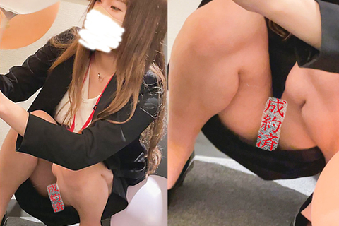 【胸チラ&パンチラ】展示場スタッフの飾り付け、事務派遣さん(丸見えでした)