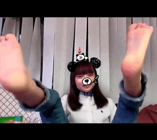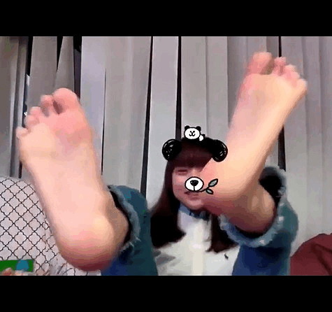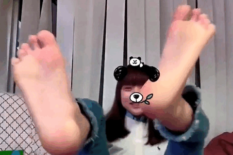 姫カットのかわいい女性が足裏をこちらに向けて見せてくれます。