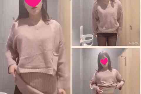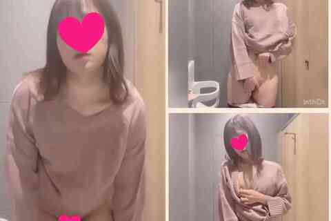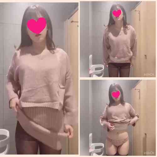 どこかのトイレなのか、個室に入って、カメラ目線で脱ぎ始めています。