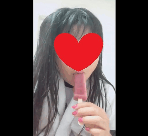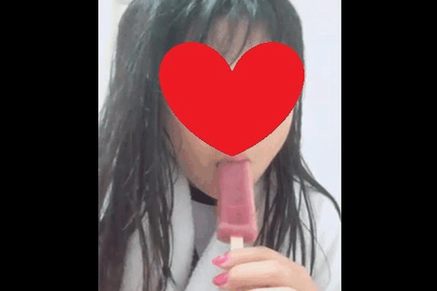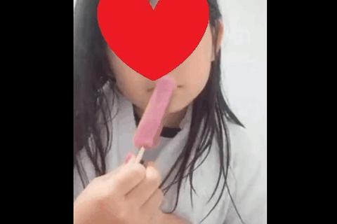紫色の棒付きアイスをちゅぱちゅぱとほおばっています。