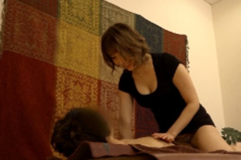 少し派手目な巨乳セラピストのお姉さんはにこやかに疲れを癒すため密着マッサージ。血行が良くなるとともに押し付けられた巨乳でチンコはビンビン。巧みな技術を駆使したマッサージで何度もスッキリするような快楽提供が時間を忘れさせる。