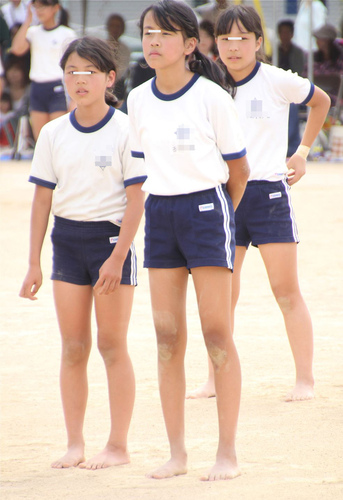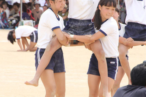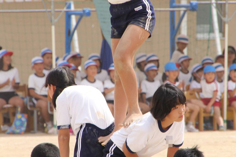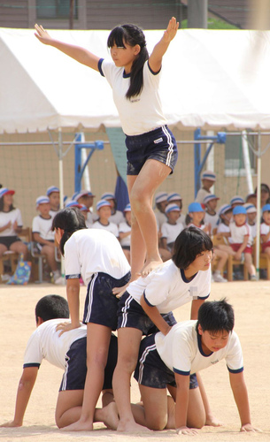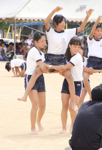 紺地白2本ライン短パンの組体操の様子続き。