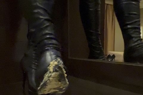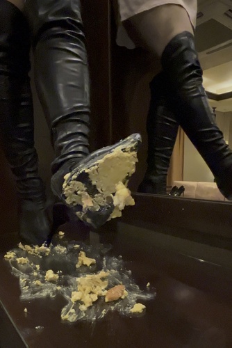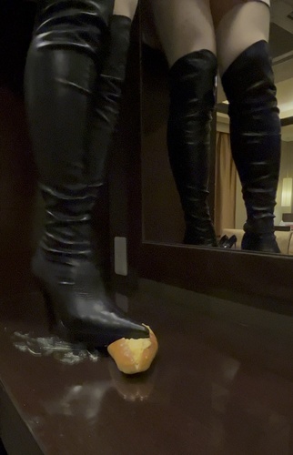 ニーハイブーツでタマゴサンド踏み潰し1 #フードクラッシュ #ブーツフェチ #ロングブーツ