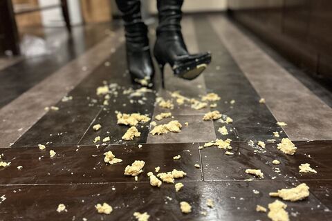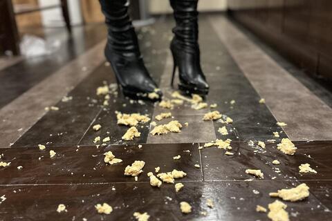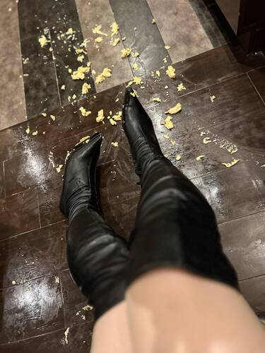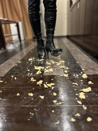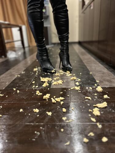 ニーハイブーツでタマゴサンド踏み潰し2 #フードクラッシュ #ブーツフェチ #ロングブーツ
