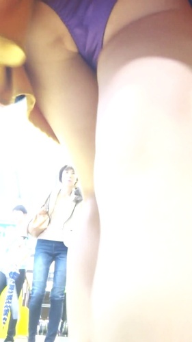 パンチラ盗撮 超ミニスカすぎて紫パンツが超丸見え