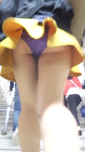 彼女は黄色い超ミニスカートを履いていました。ものすごくスカート丈が短い上に裾がヒラヒラしていて今にもパンツが見えそうになっています。これを見せられたら撮るしかありません。もうパンツ丸見え間違いなしです。そこですぐにカメラを準備して撮影体制に入りました。絶対にパンツを仕留めてやろうと背後から彼女に近づきつつ、スカートの中を撮るタイミングを伺います。