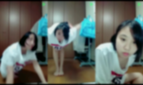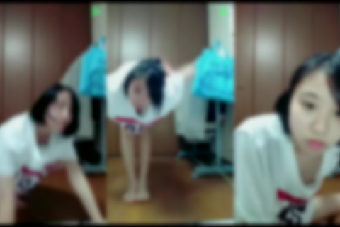 ダンスや柔軟体操をしていますが、かなりガードが固く前かがみになる際は胸チラしないように手で抑えていたので、しっかりブラもして見えない対策している子かなと思ったら何とがっつりお腹まで丸見えになりノーブラであることが確定し見ていると18分43秒、19分45秒でがっつり乳首をポロリしています。