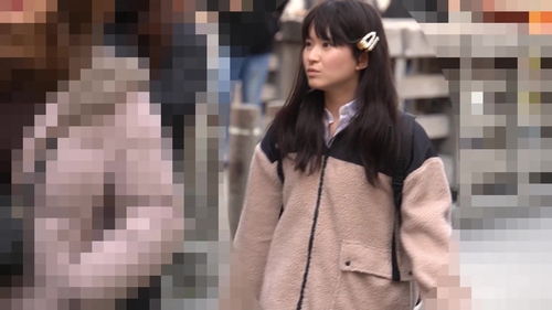 繁華街で友人と食べ歩きしている子に粘着していると、お店で買った物を階段に座って食べ始めたのでラッキーと思い正面に回って見てみると何と、パンツが食い込んで丸見えになっていました。